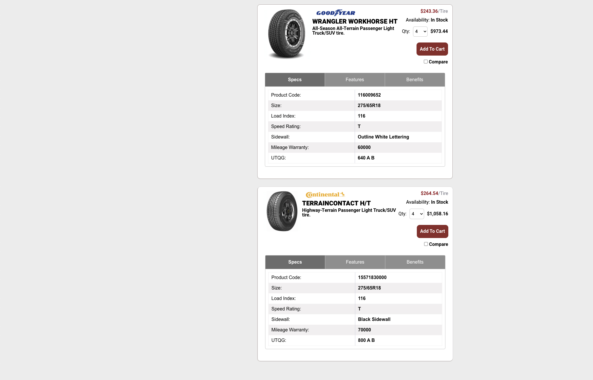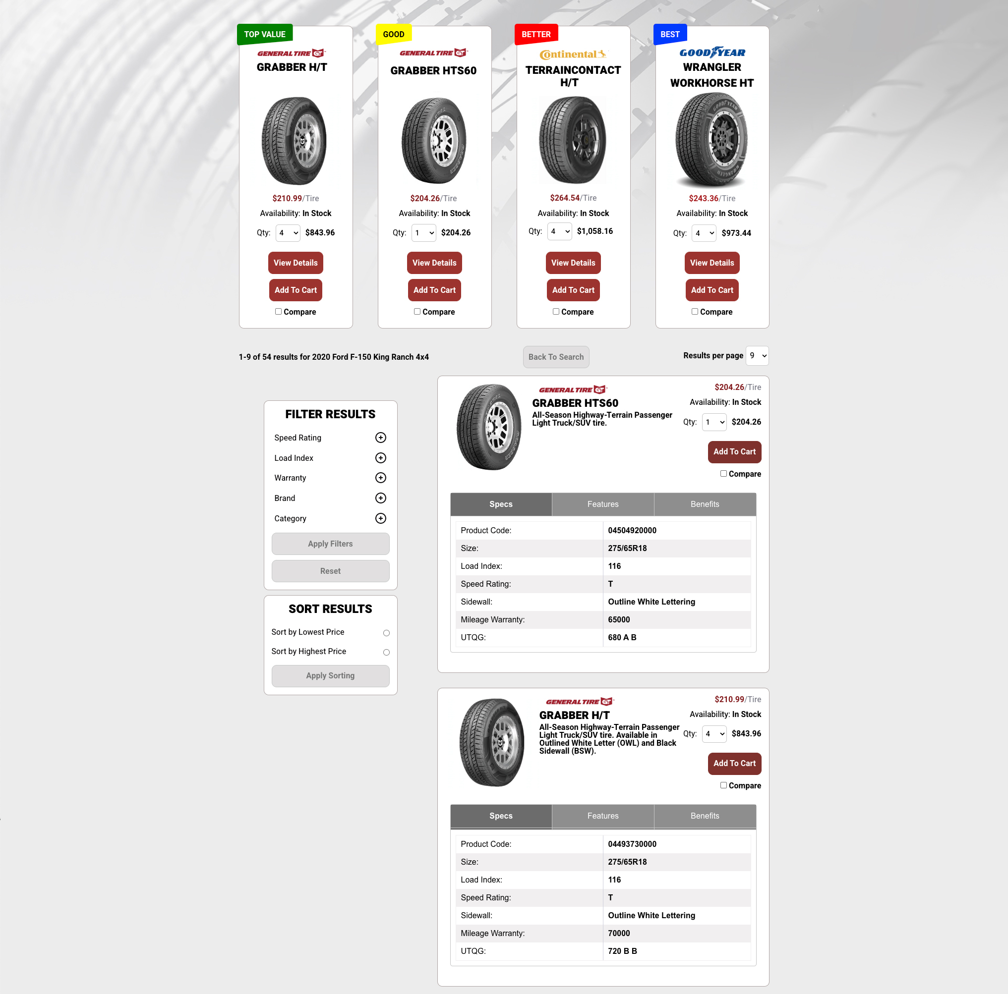 The below screen capture shows the search results. We can control the Top Value, Good, Better, and Best options. There are filters available to filter specific brands. Click anywhere on the below search results to advance to the next preview screen in the shopping cart.